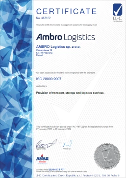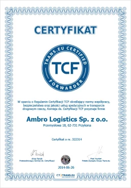 Certyfikaty transportowe Ambro Logistics